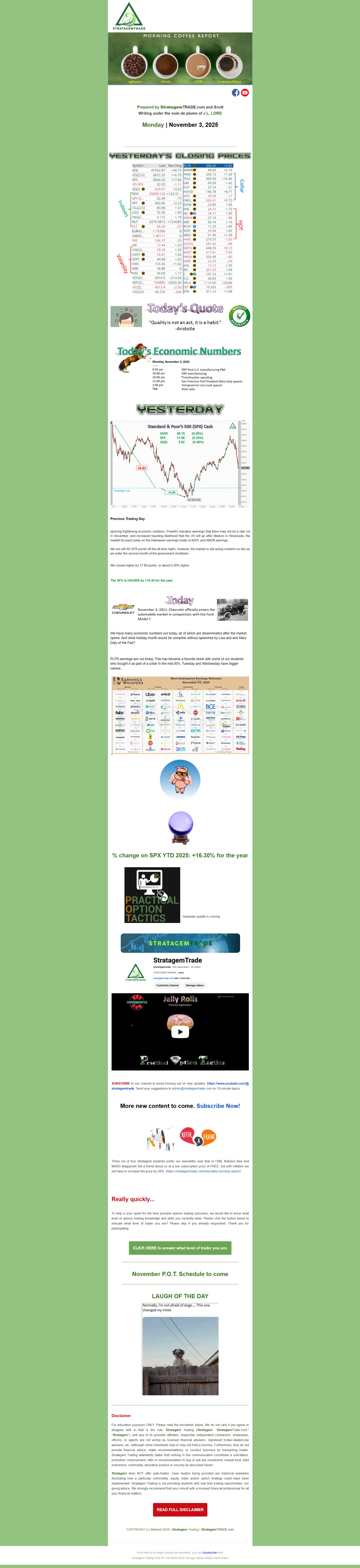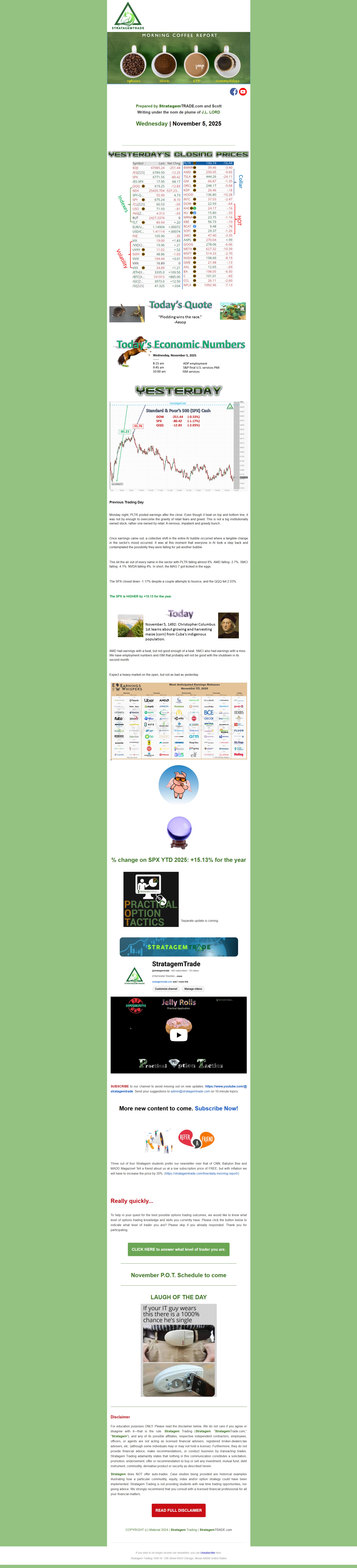 The Morning Coffee Report is a non-conformist, not necessarily politically correct, daily market overview.